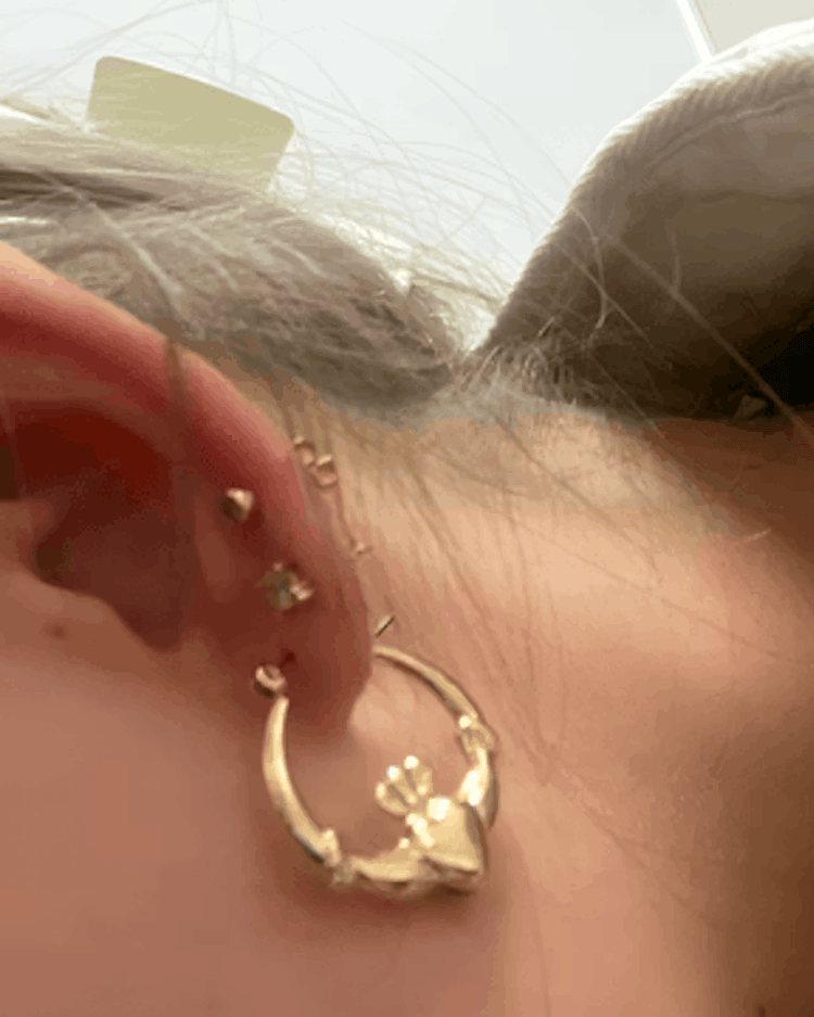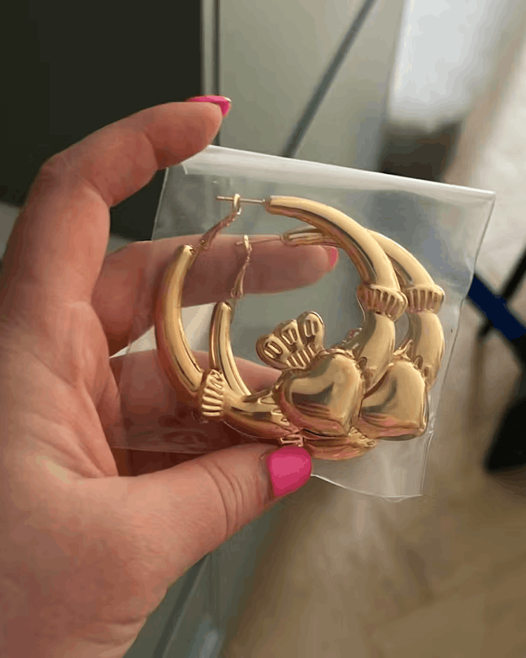 - Dainty hoop design with Claddagh detailing
