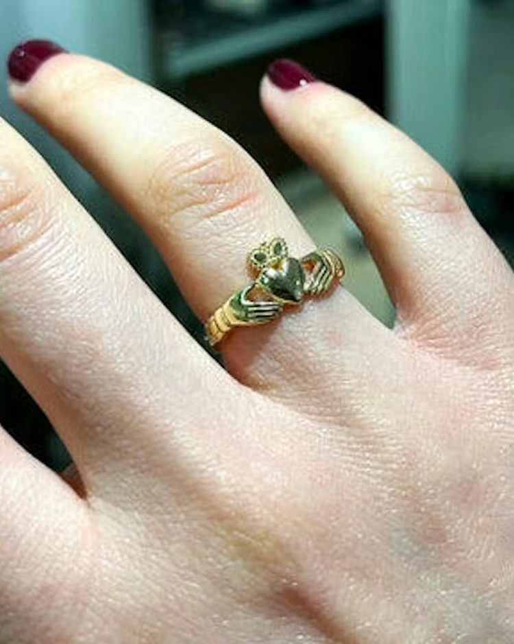 Just a clean take on the Claddagh — gold, simple, worn daily.